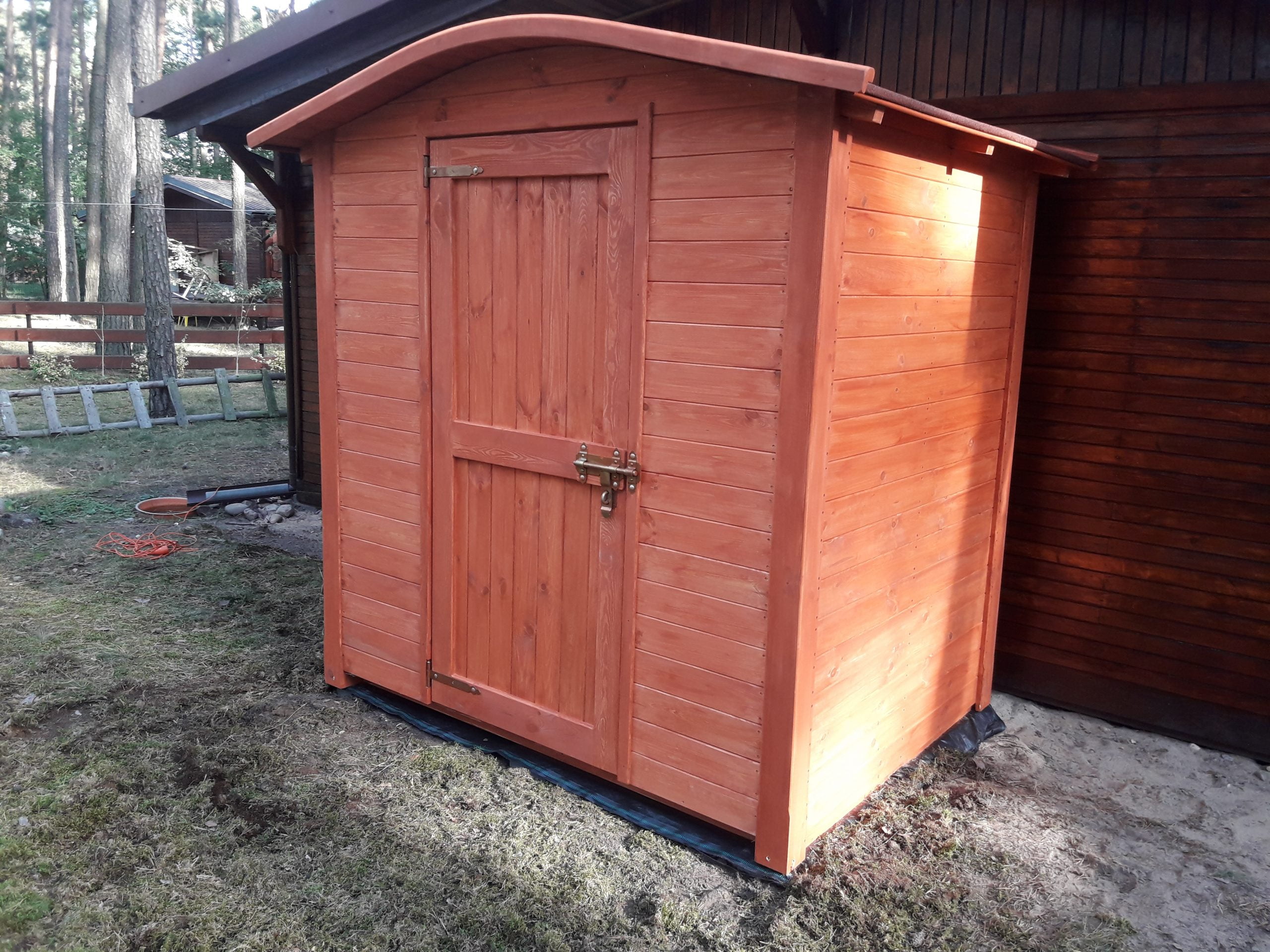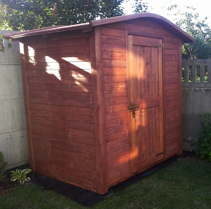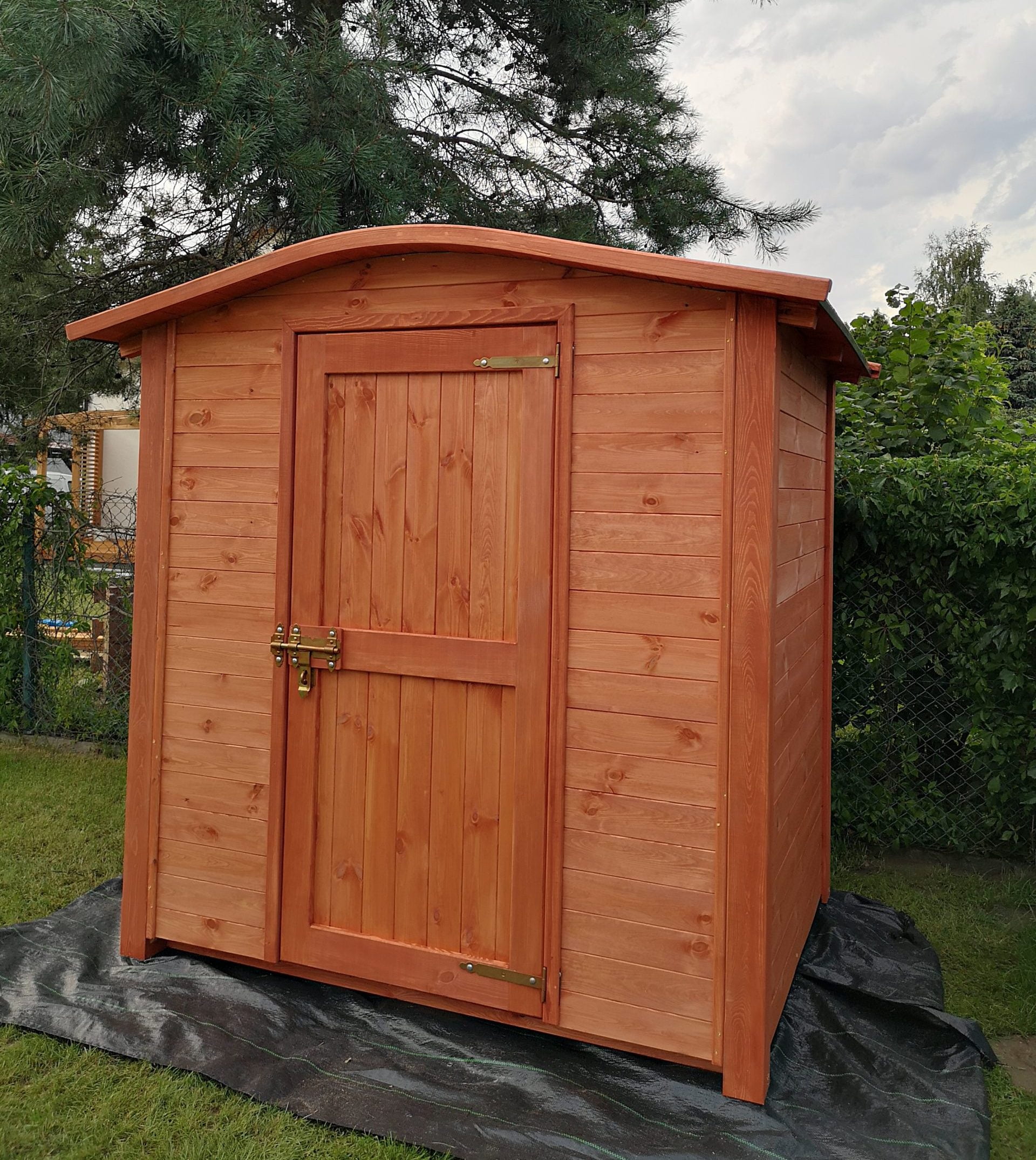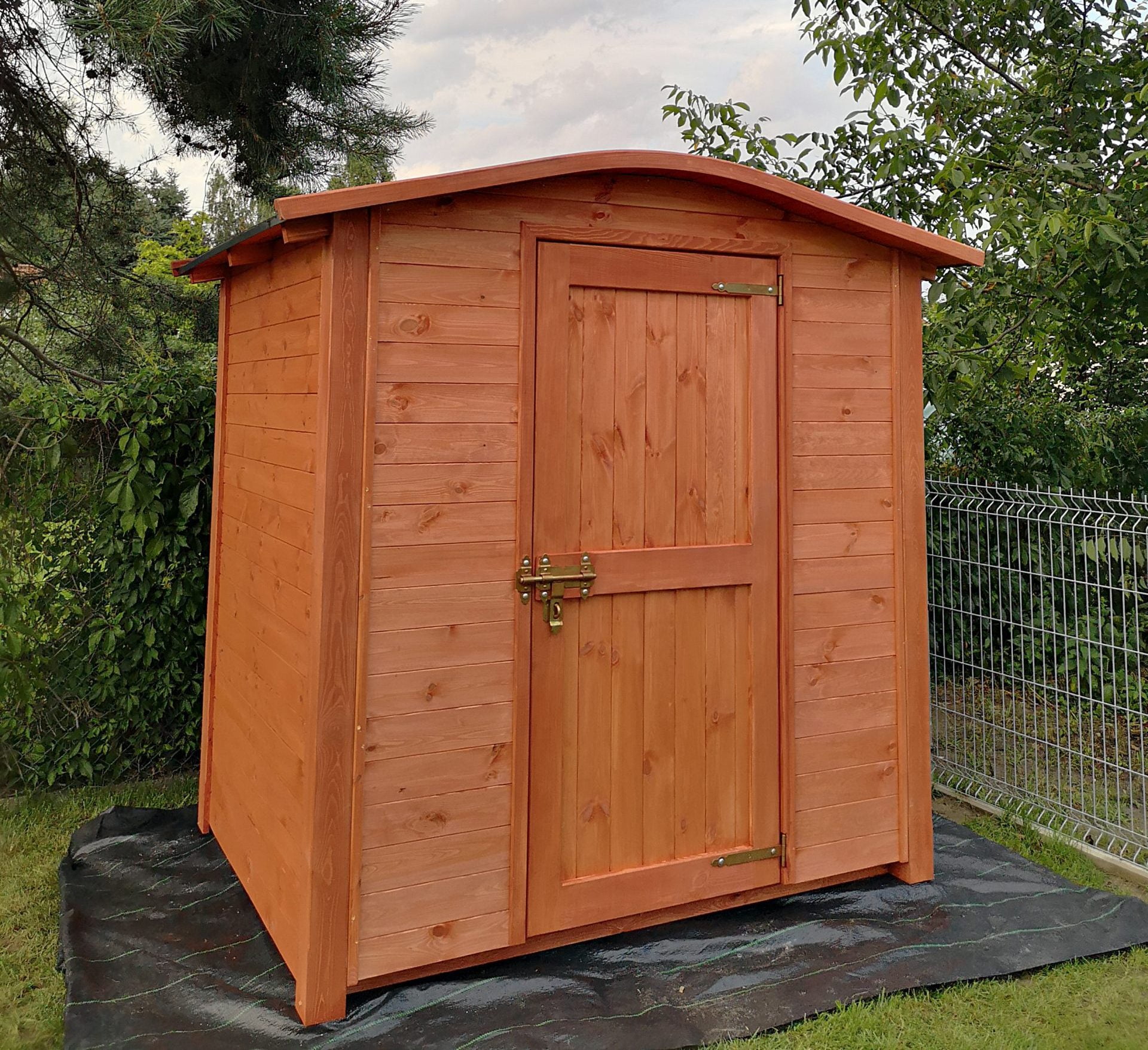 Domek narzędziowy 2 x 1,5m z dachem giętym dwuspadowym na boki w konstrukcji słupowej (spad na boki)