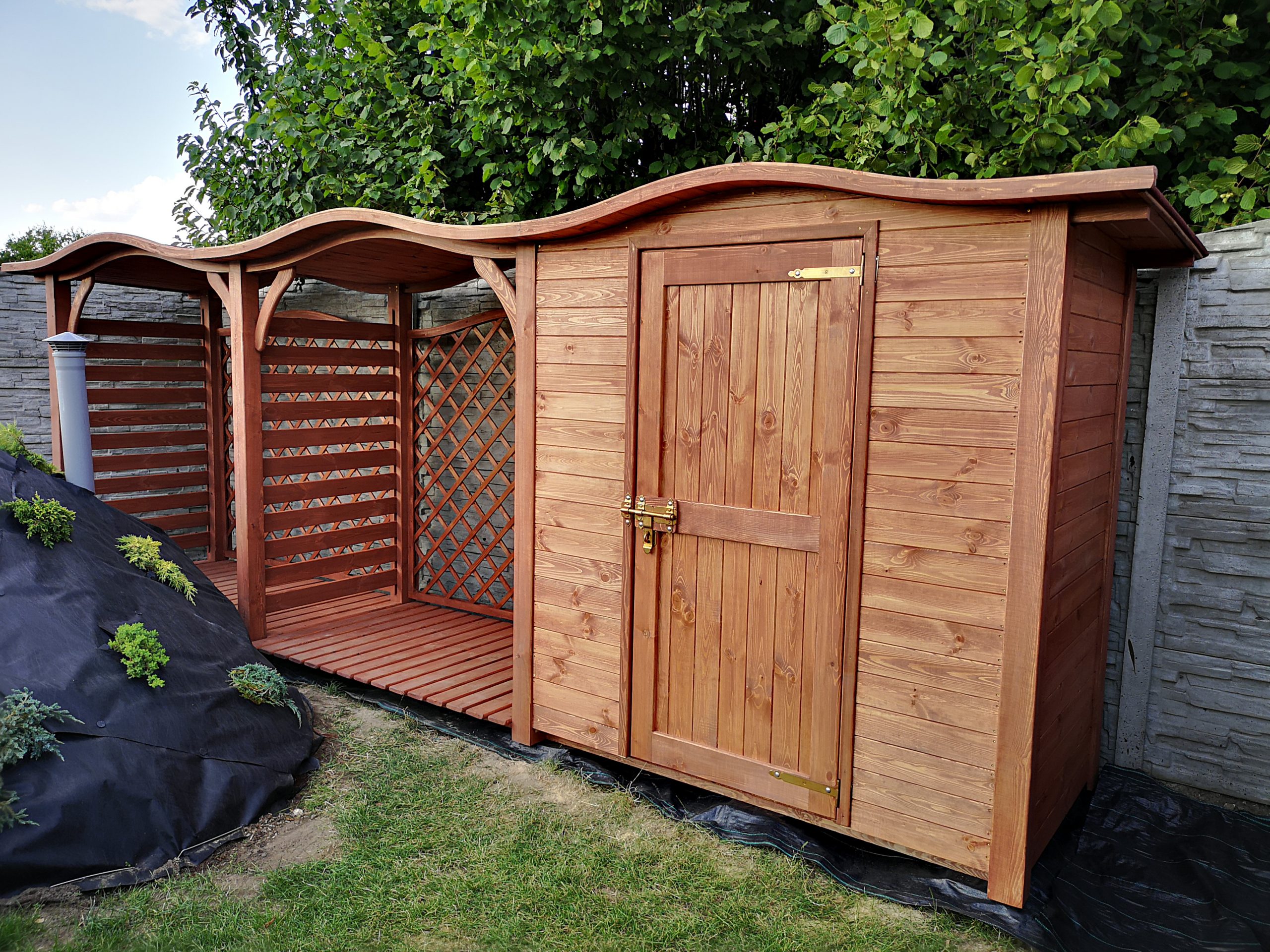 Drewutnia 1,9 x 1,1m dach fala + drewutnia 1,9 x 1,1m dach falowym + domek narzędziowy 2 x 1,1m dach fala (spad tył)