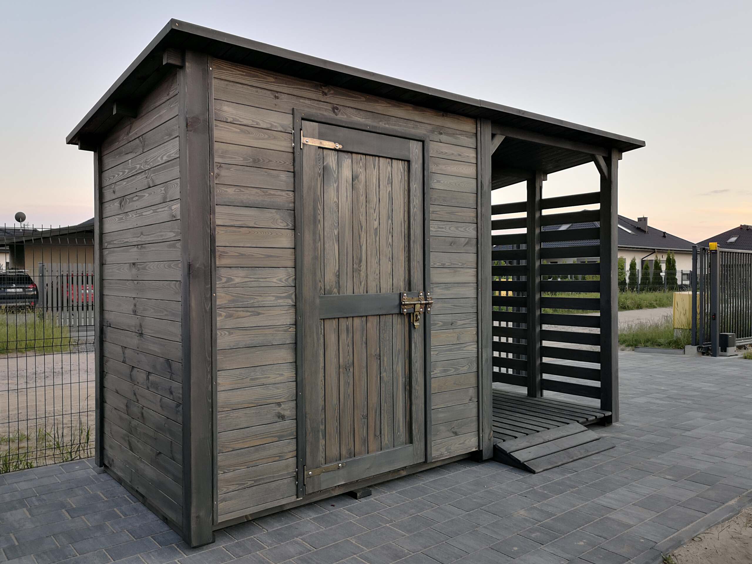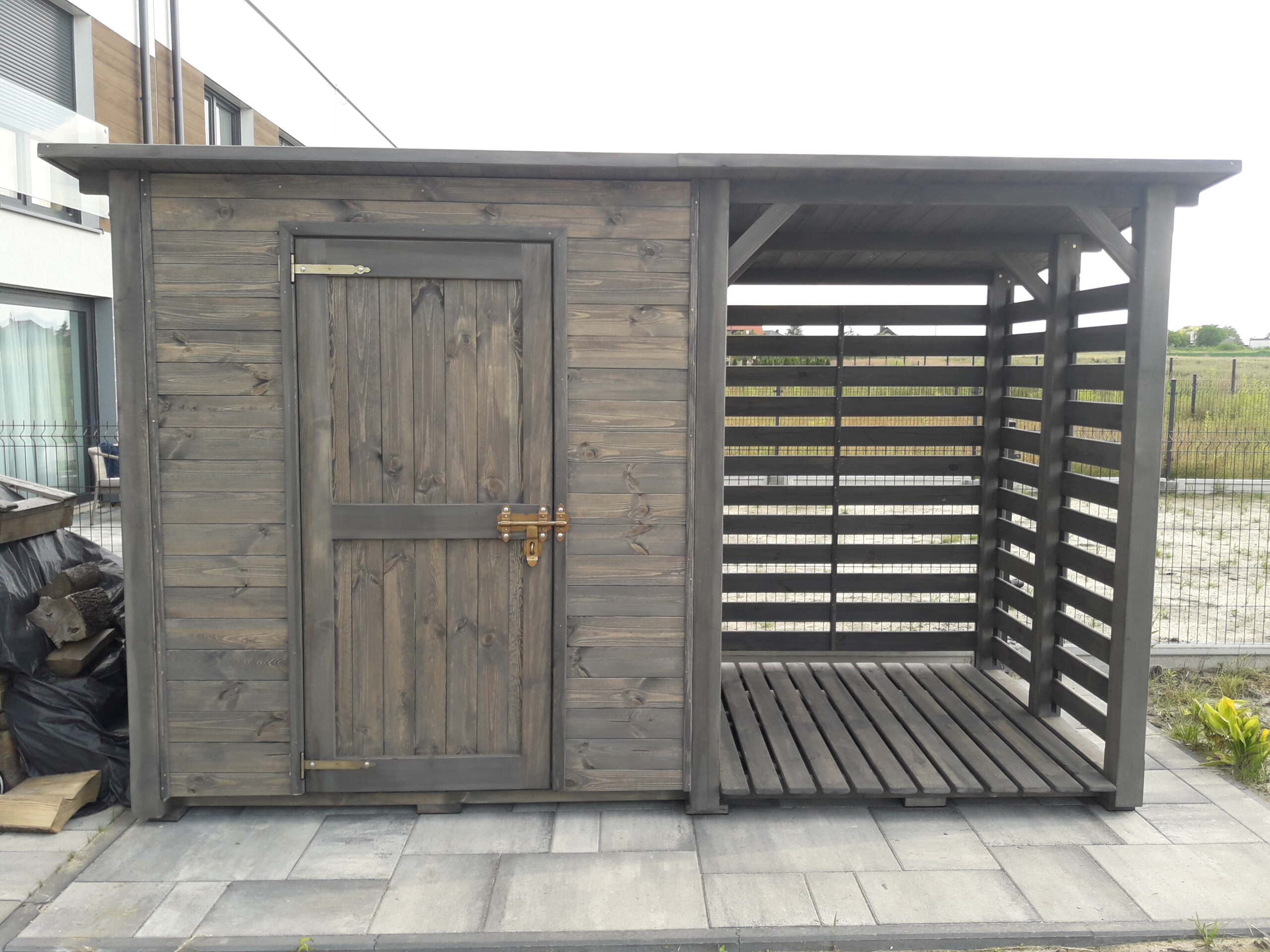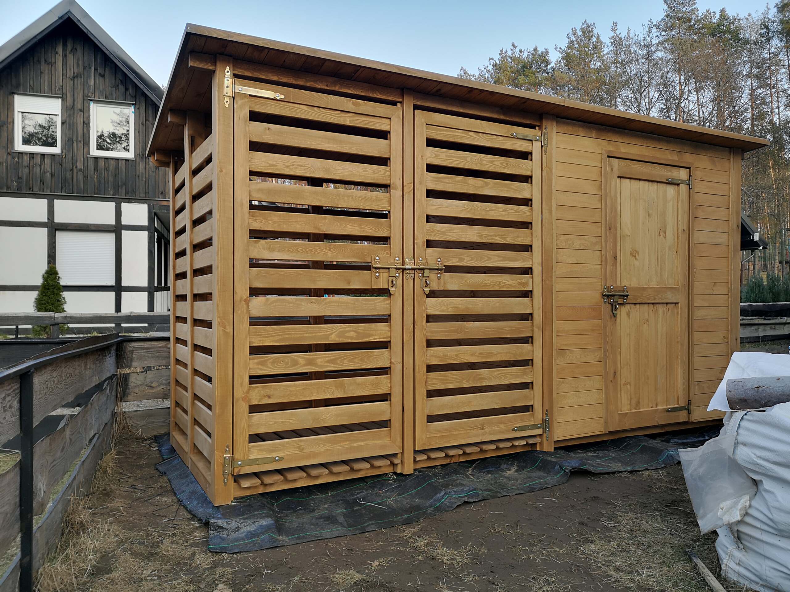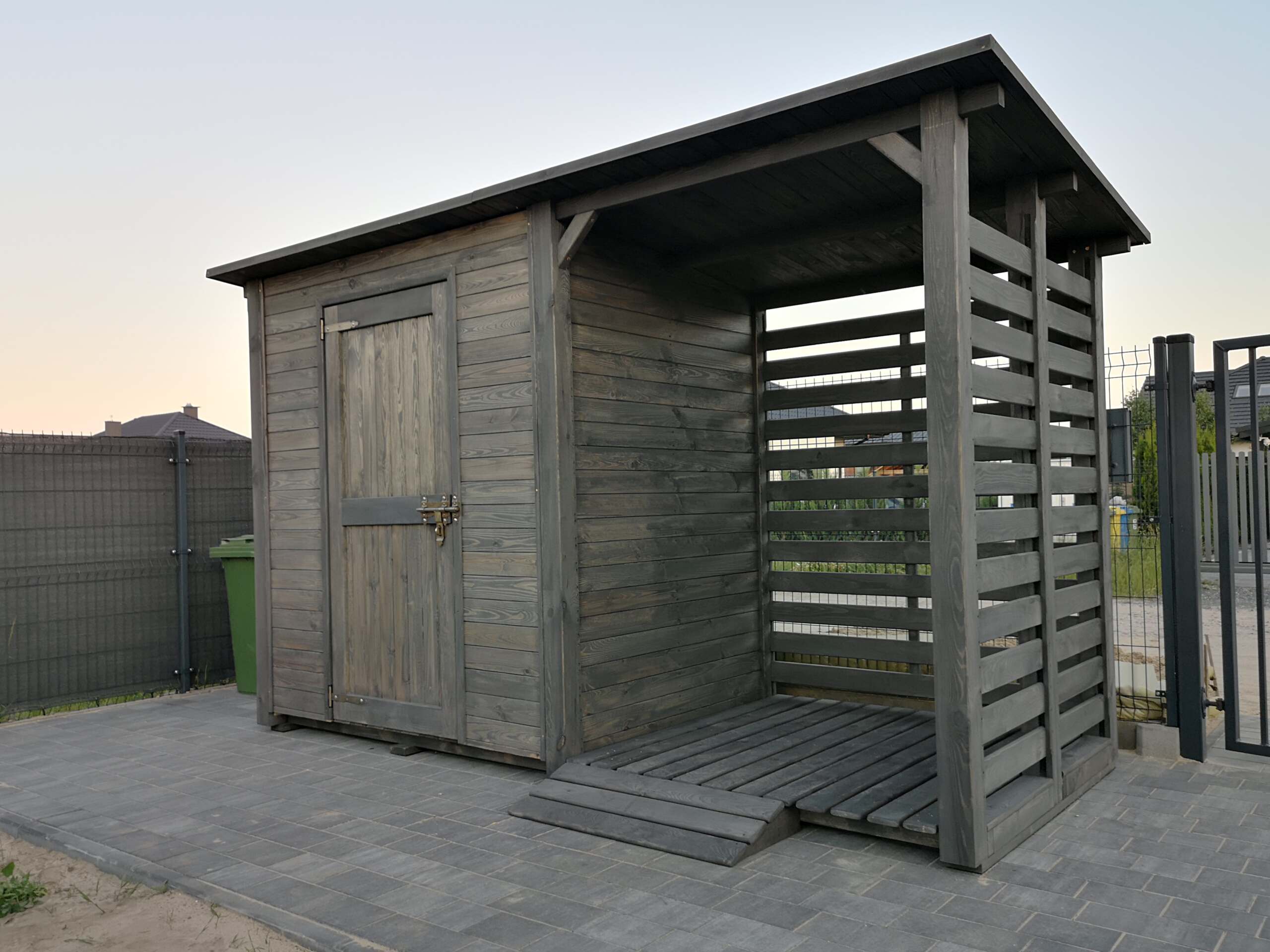 Drewutnia 1,5 x 1,5m + domek narzędziowy 2 x 1,5m z dachem prostym jednospadowym (do przodu lub do tyłu)