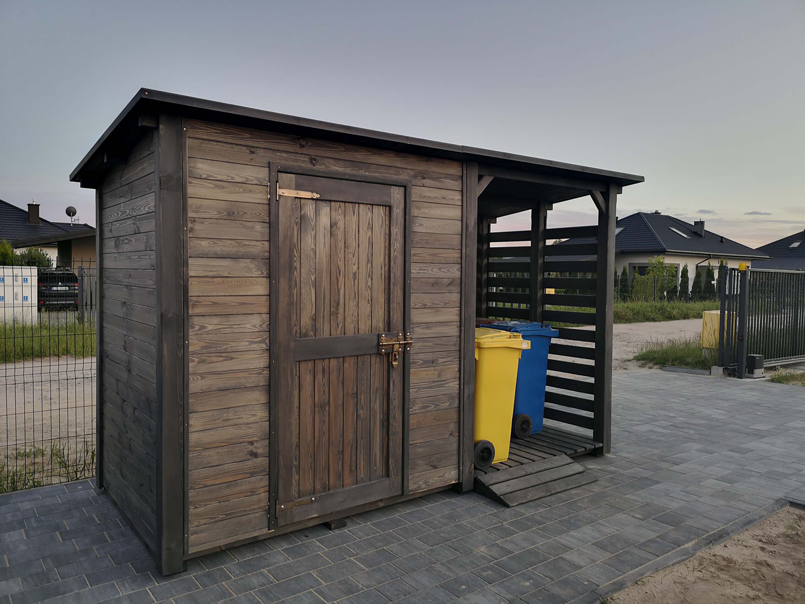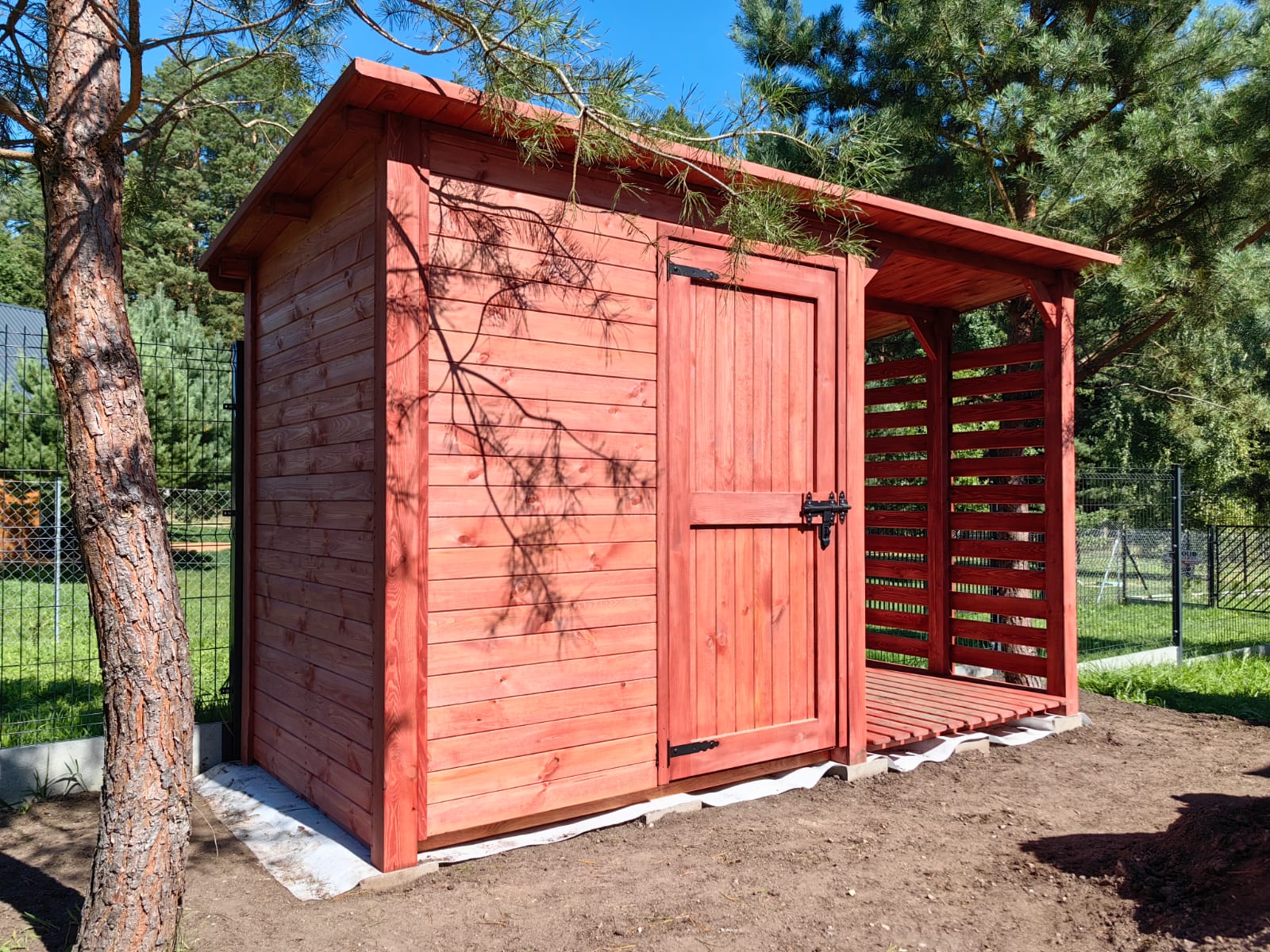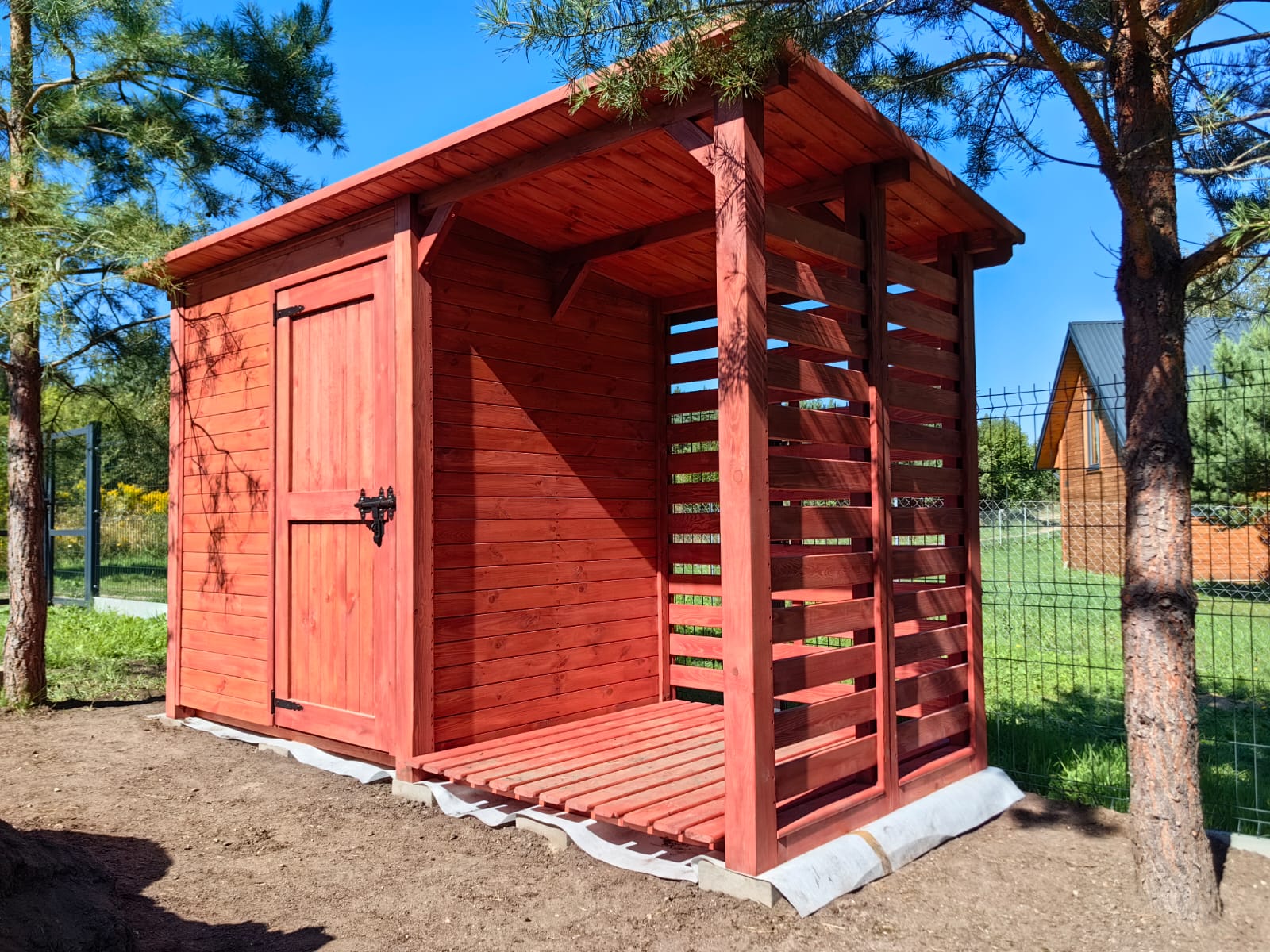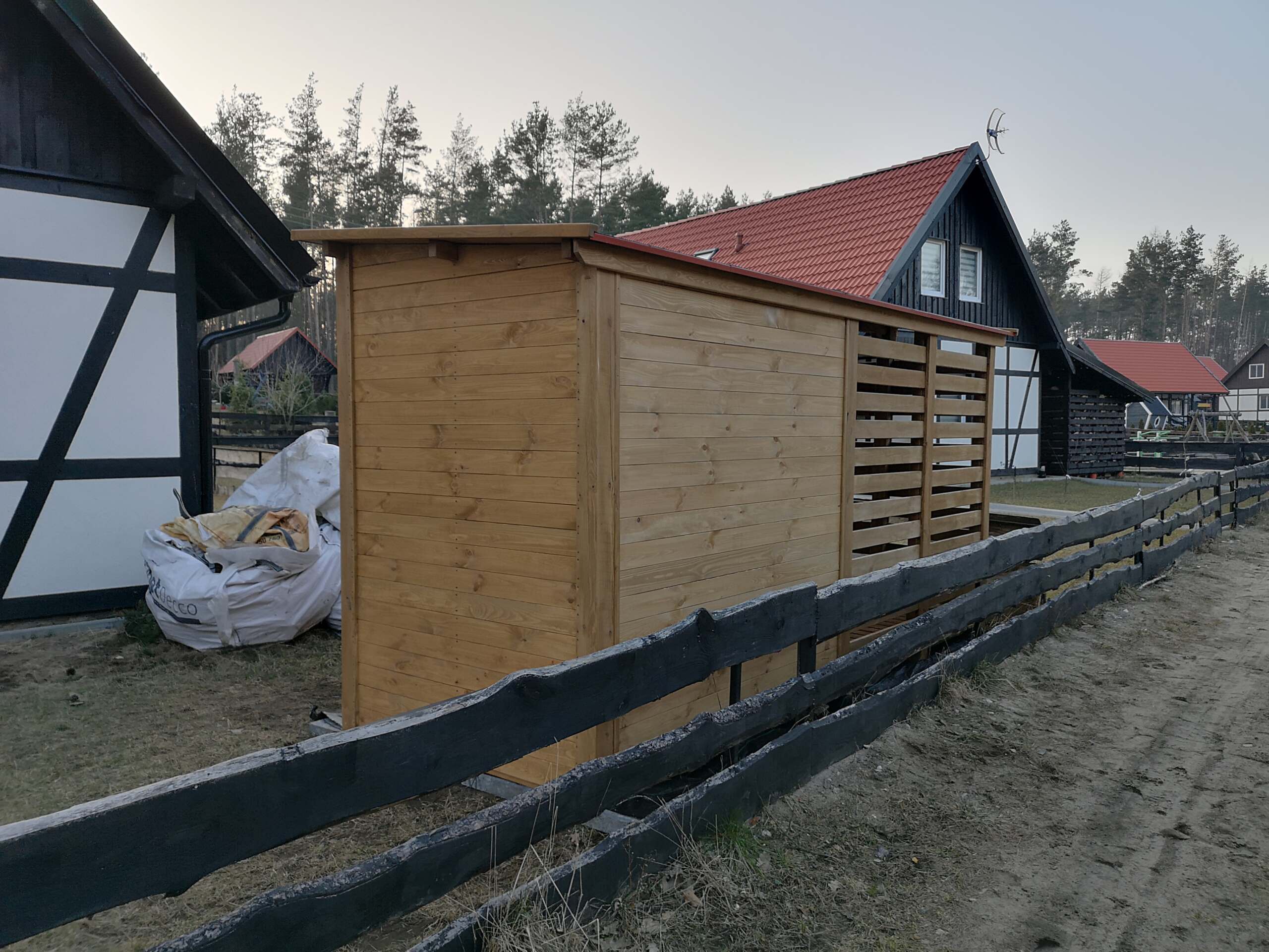 Drewutnia 1,5 x 1,5m + domek narzędziowy 2 x 1,5m z dachem prostym jednospadowym (do przodu lub do tyłu)