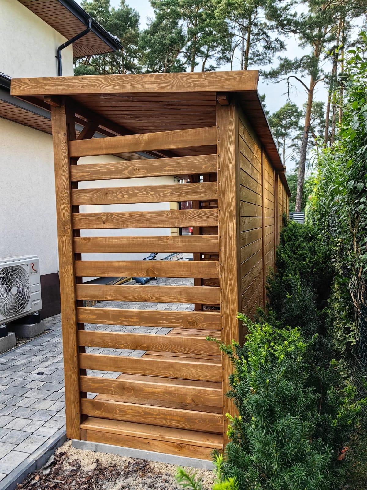 ewentualna nakładka ozdobna z cienkich listew na zewnętrzną boczną ściankę drewutni – 450zł/1szt (patrz PDF opcje dodatkowe na dole strony)