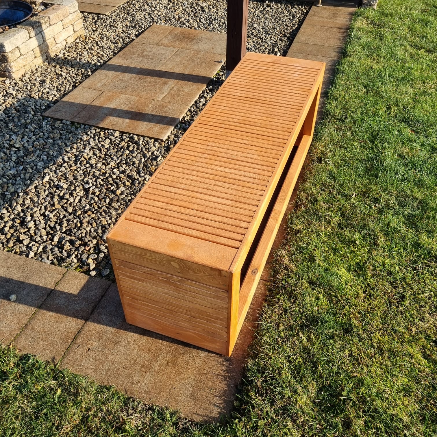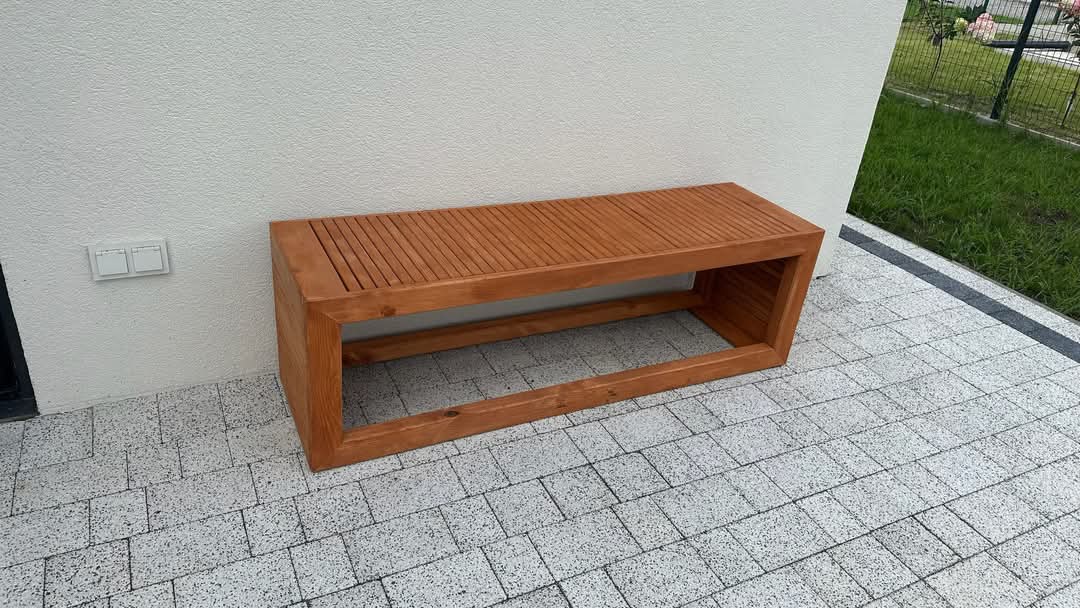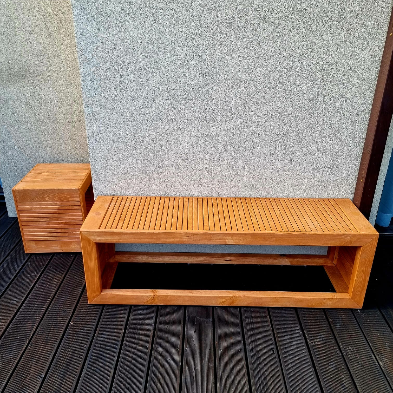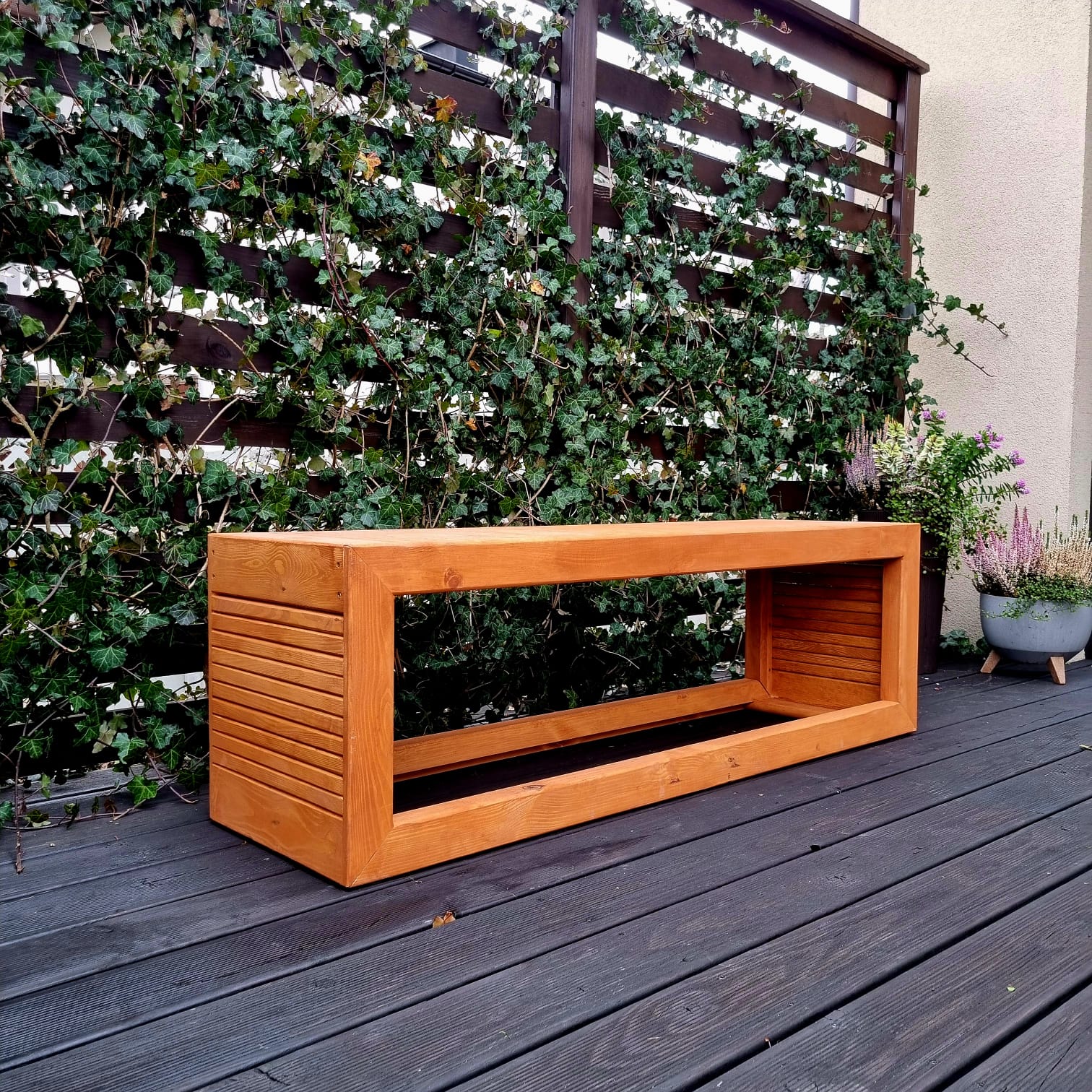 10. Ławka, siedzisko drewniane ogrodowe tarasowe typ K2 – cienka listwa