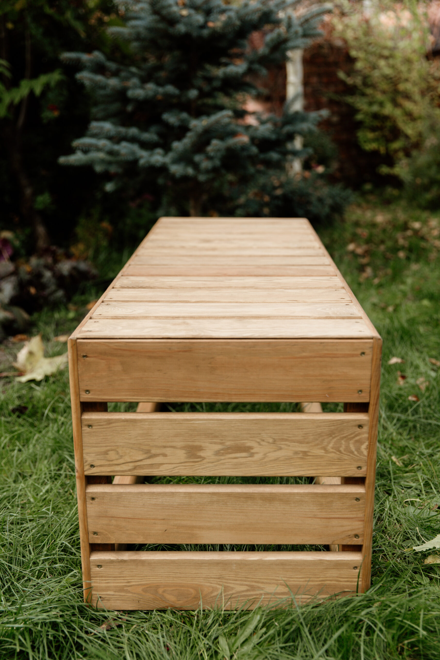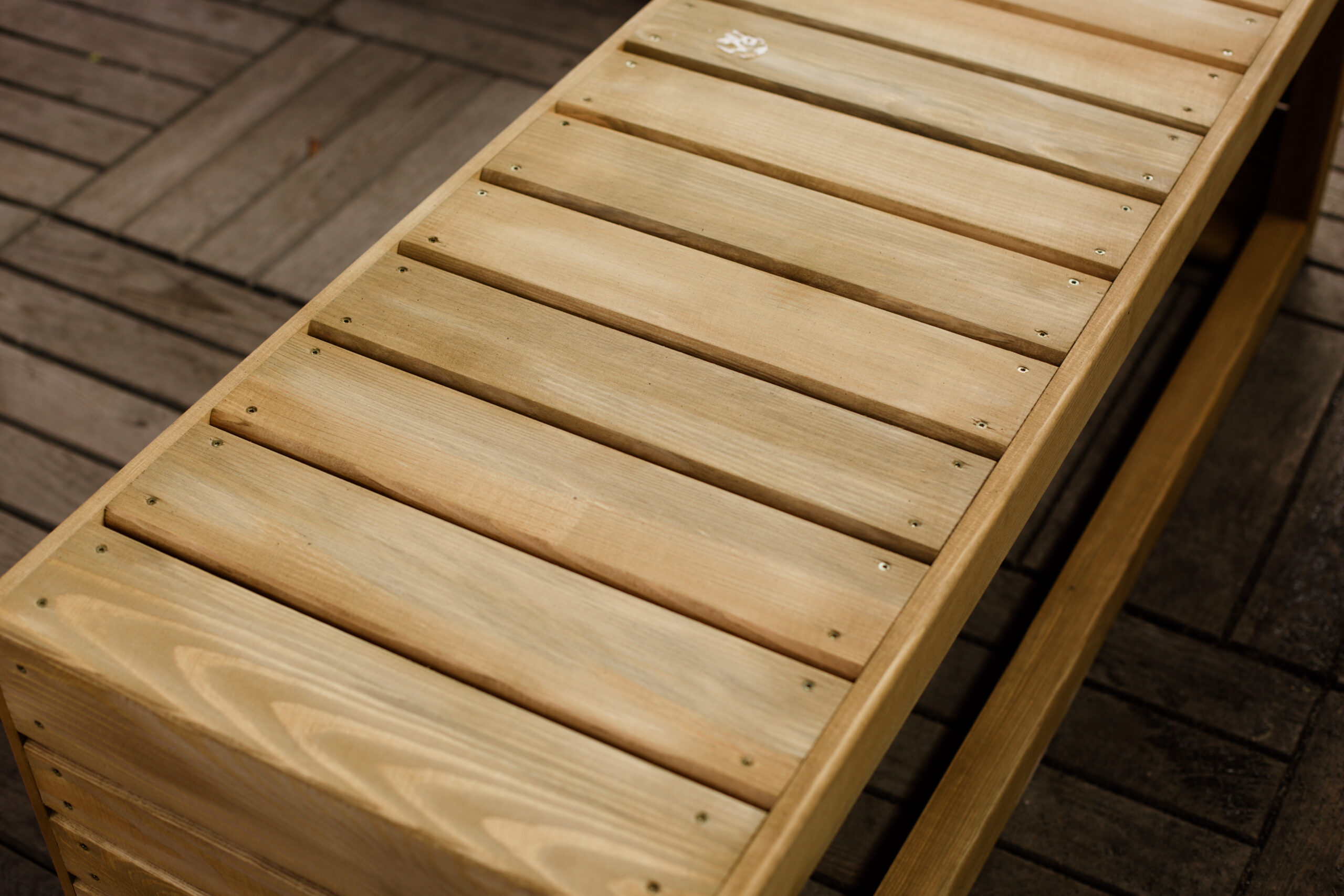 4. Ławka, siedzisko drewniane ogrodowe tarasowe
