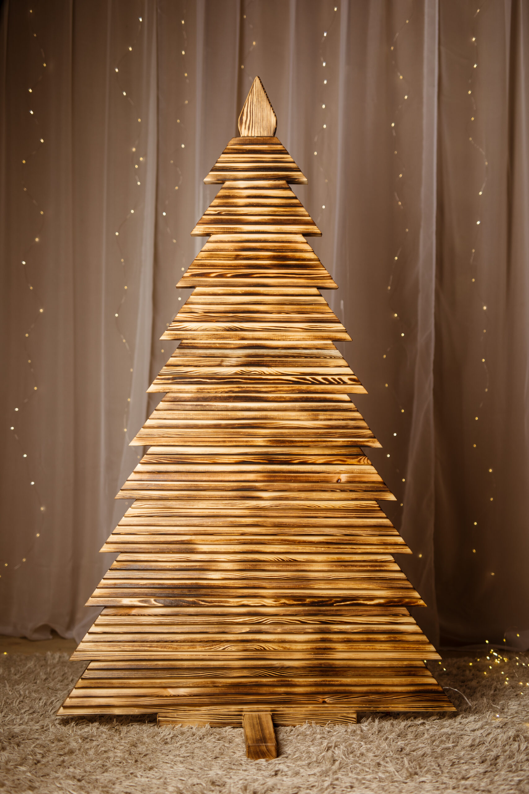 Quick ViewDrewniana choinka EKO, drzewko świąteczne 160cm, karbowana schodkowa, drewno opalane